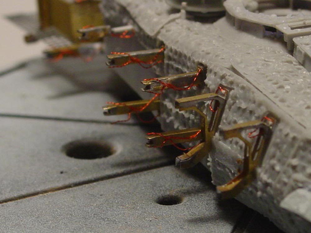 The cables are copper wire from Eureka or Perfect Scale - I'm not 100% sure which. I primed the cables with Revell Aluminium Metallic (No.99 of the Aqua Color series), applied a wash of dark umbra and a bit of sand-coloured pigments.