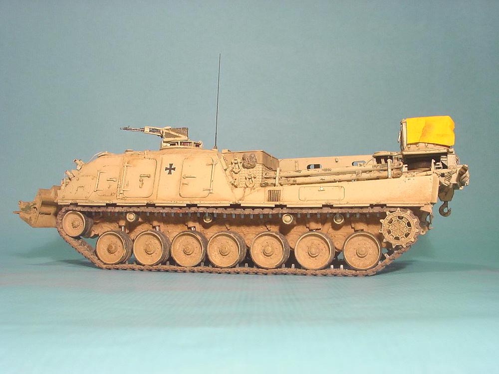 This is my PSM Büffel as it was deployed to Kunduz/AFG to support the PzH 2000. I found only four pics in Tankograd's #5031 (GECON Isaf - Wüstentarung) but all four sides were covered, so I had a good reference to build this specific tank, albeit not down to the last bolt head.